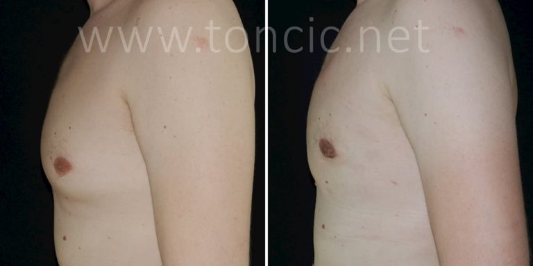 In case of the accumulated fatty tissue, we use liposuction, which is very efficient method to reduce the male breasts. In such cases, fatty tissue is removed using very fine cannulae, through a 5 mm long incision.
